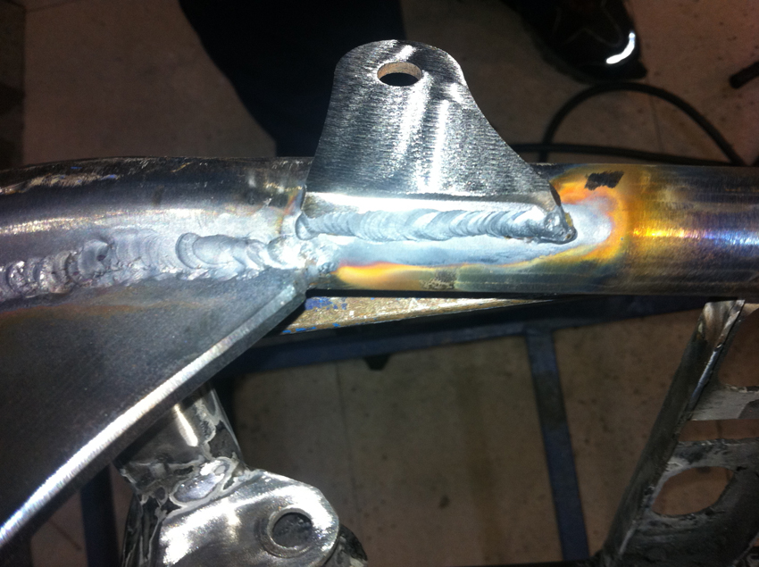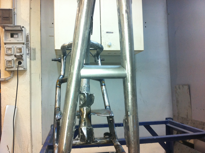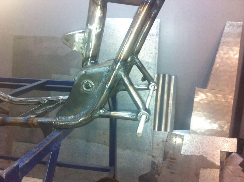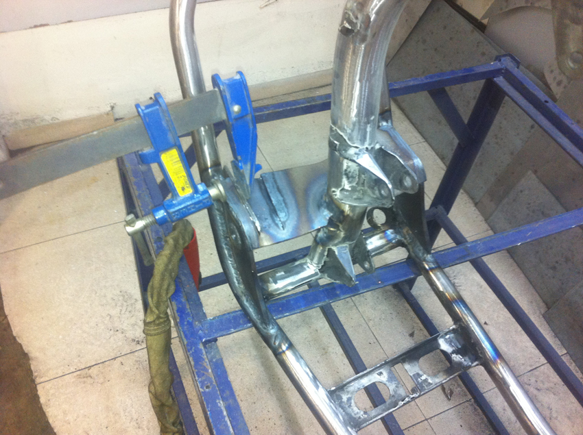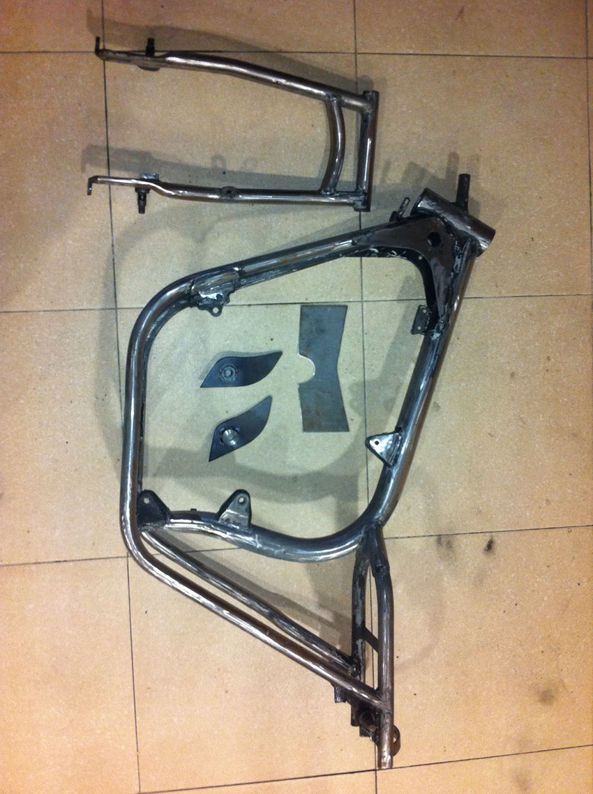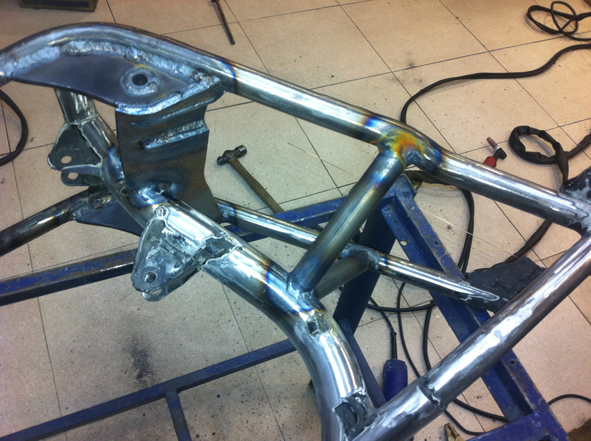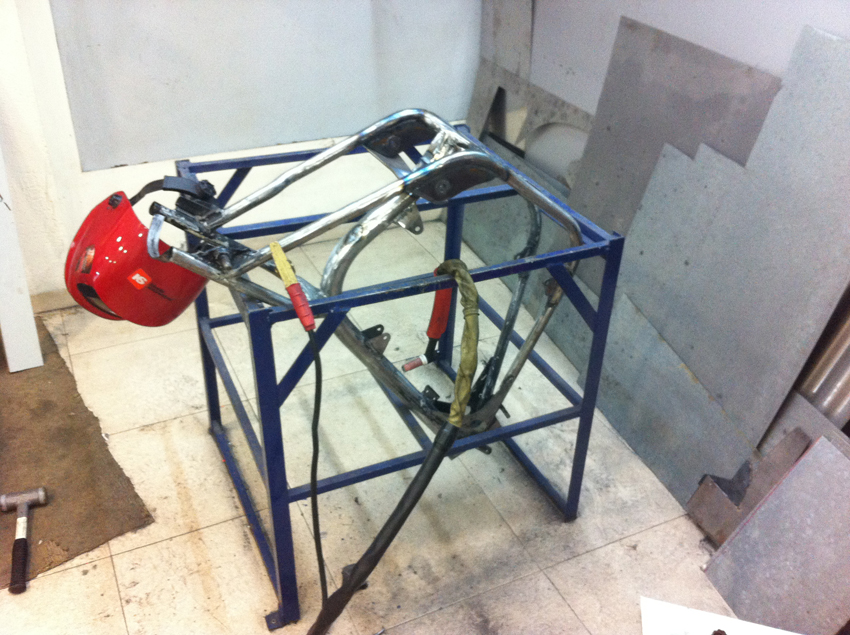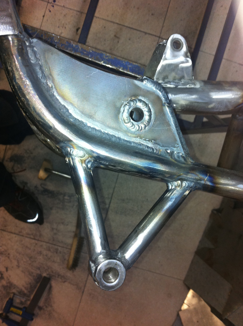 Pero hoy toca enseñaros unas fotos del proceso de modificación del chasis, en el cual se modificó la posición del anclaje del basculante y se reforzó en diferentes puntos.