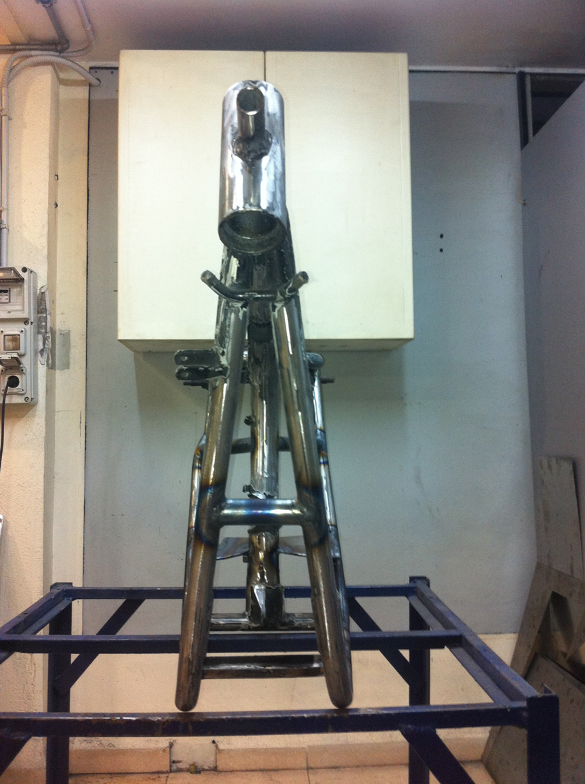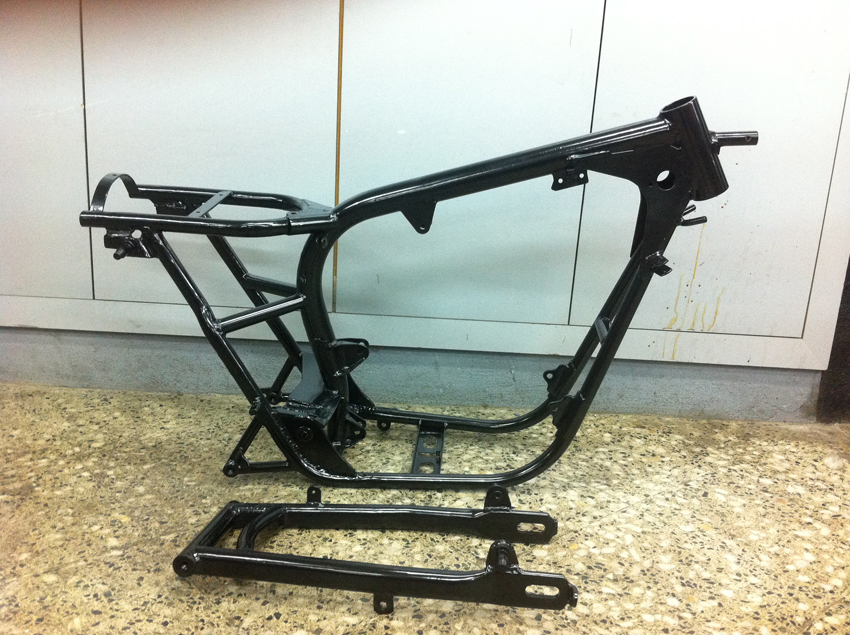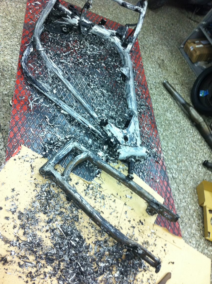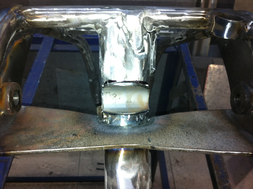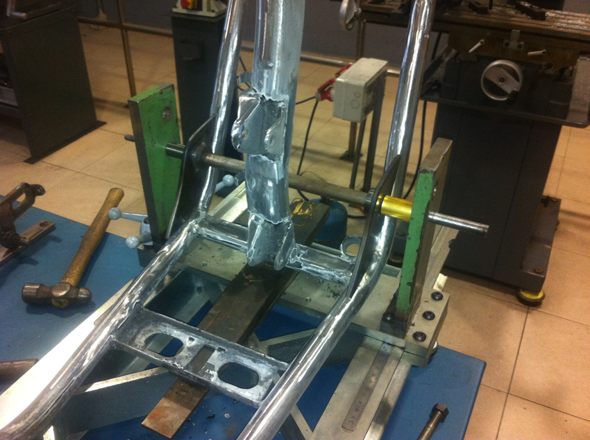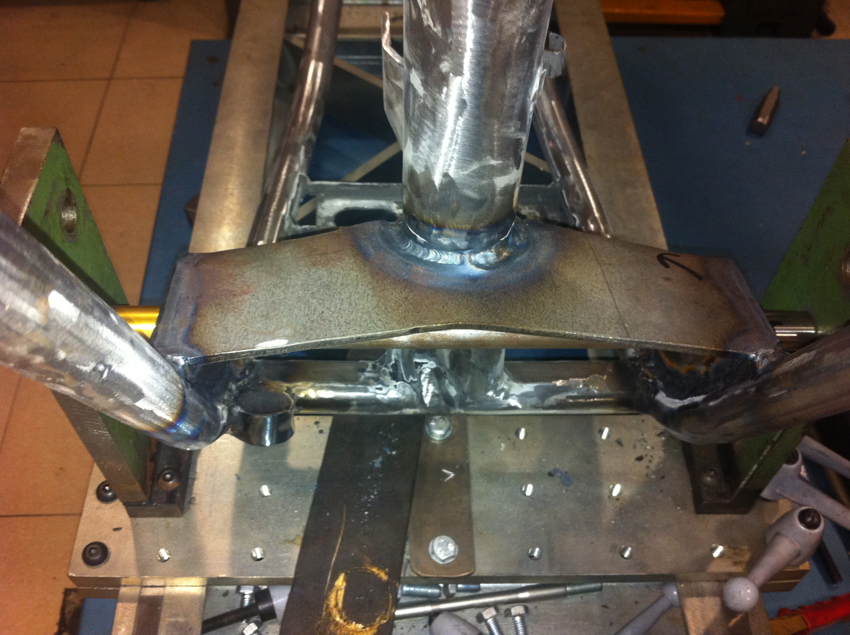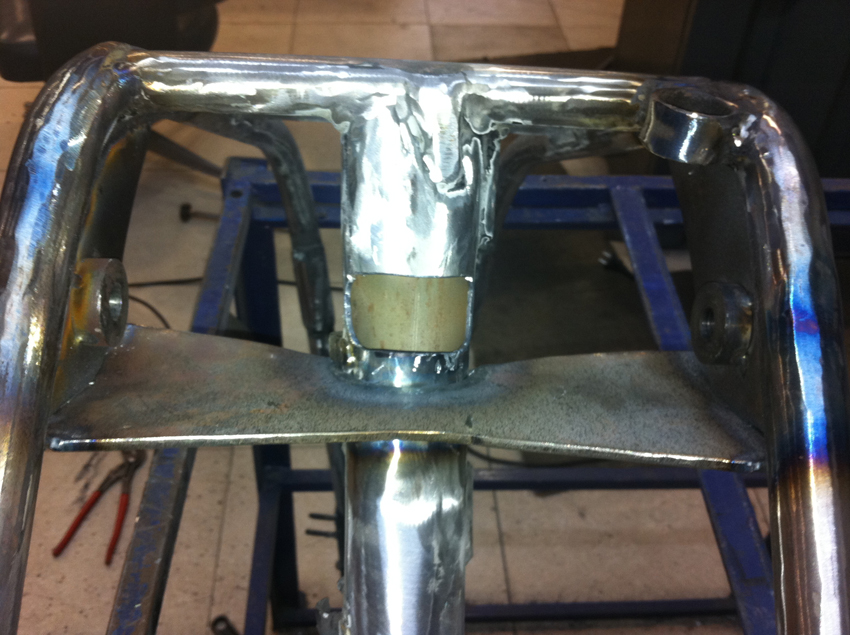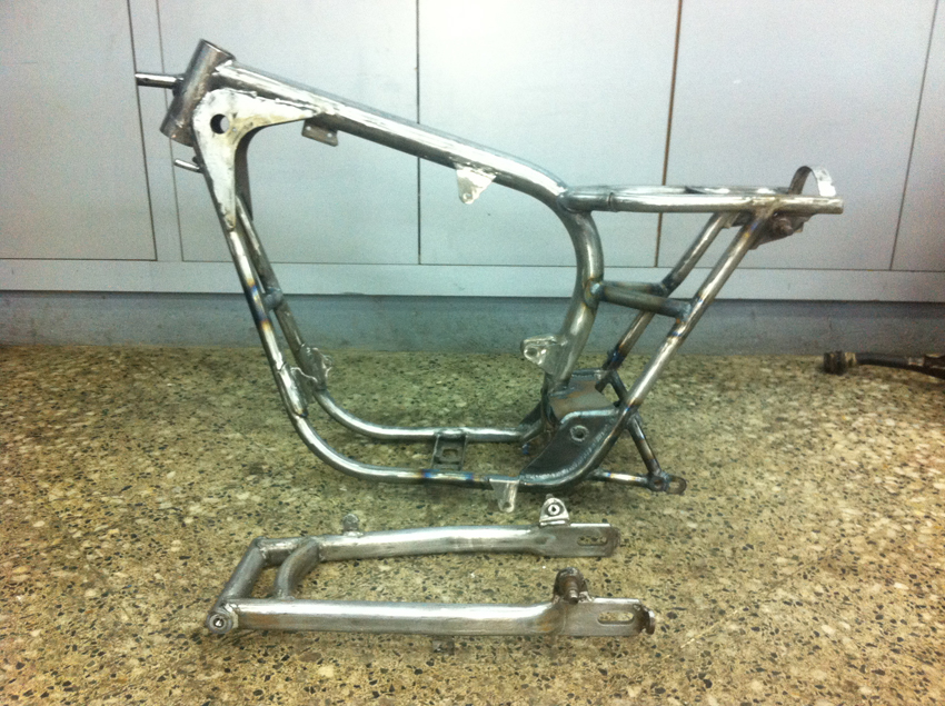 Pero hoy toca enseñaros unas fotos del proceso de modificación del chasis, en el cual se modificó la posición del anclaje del basculante y se reforzó en diferentes puntos.