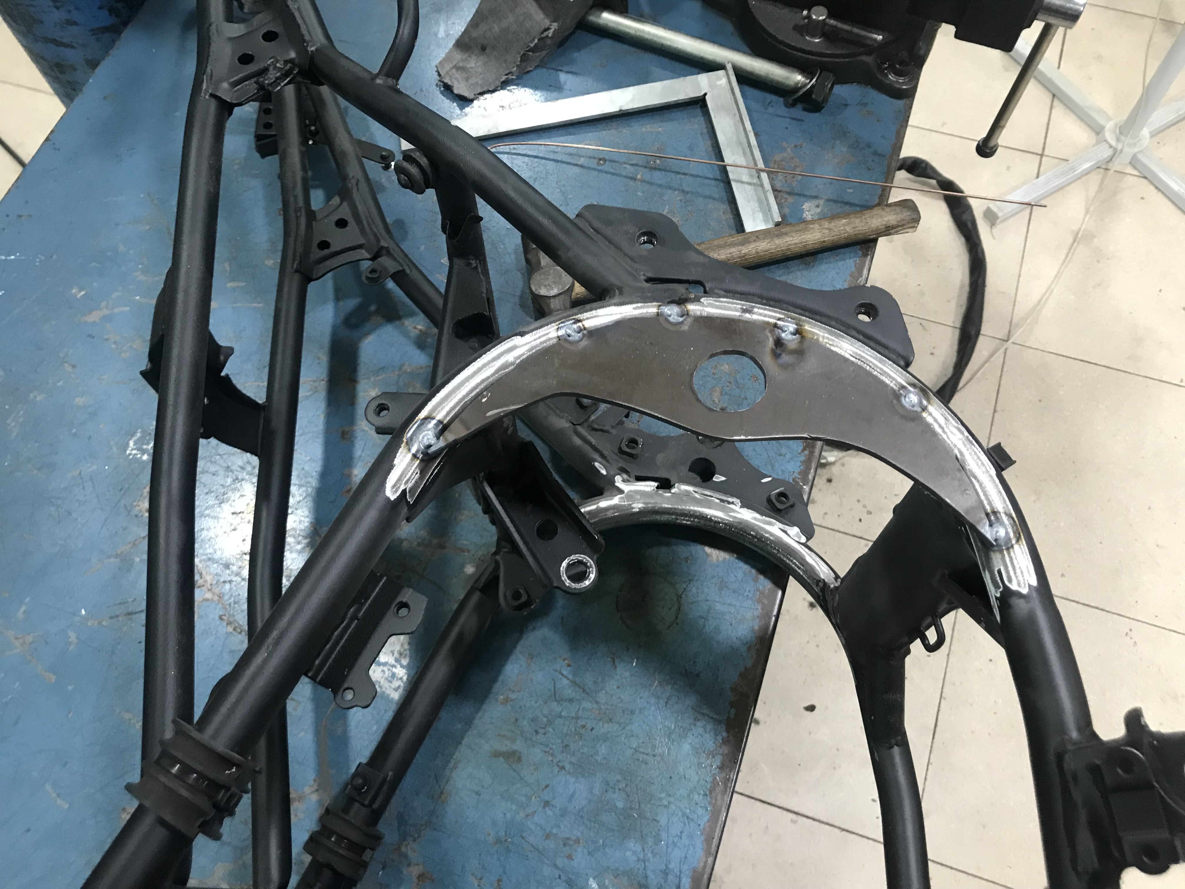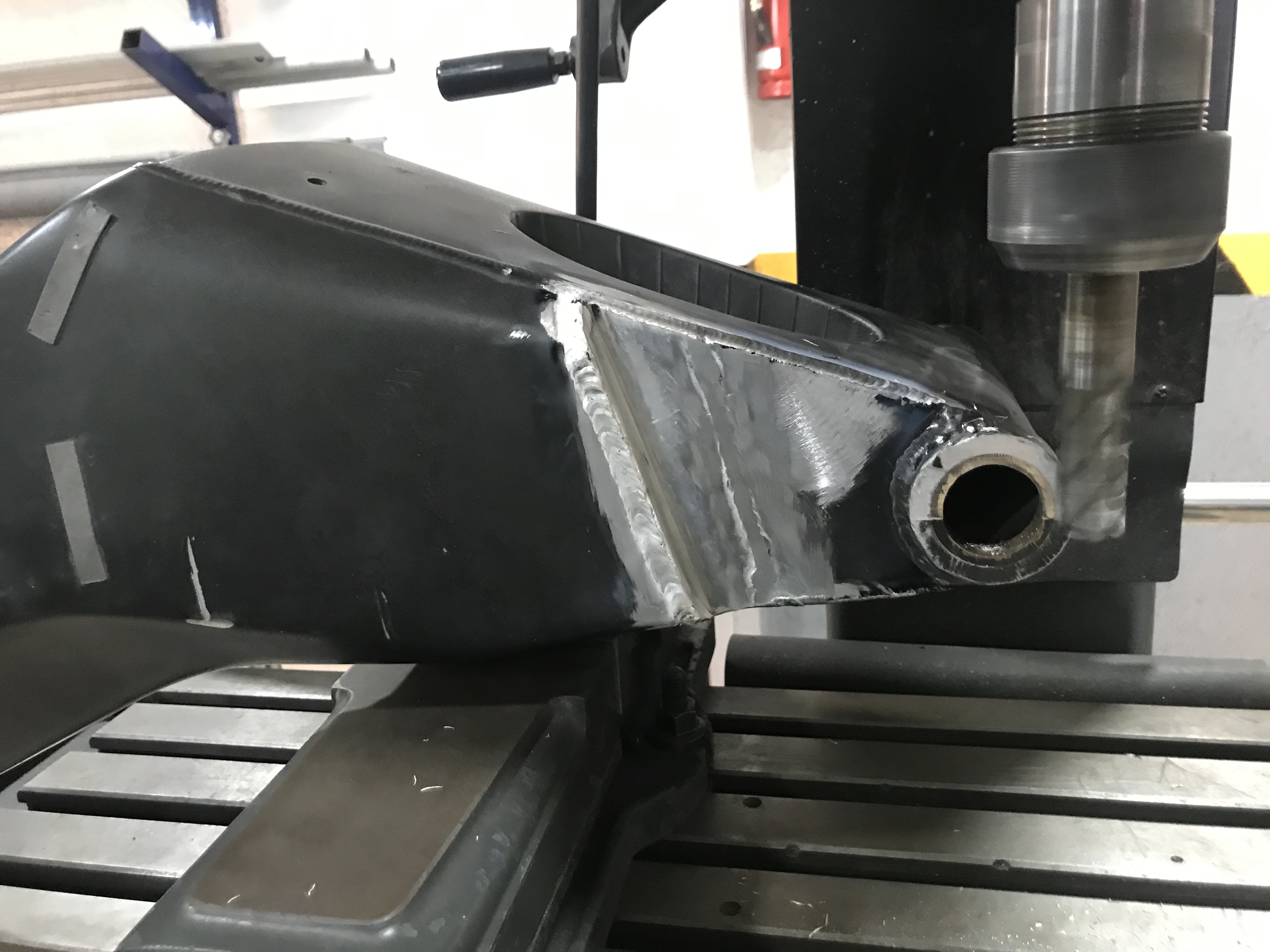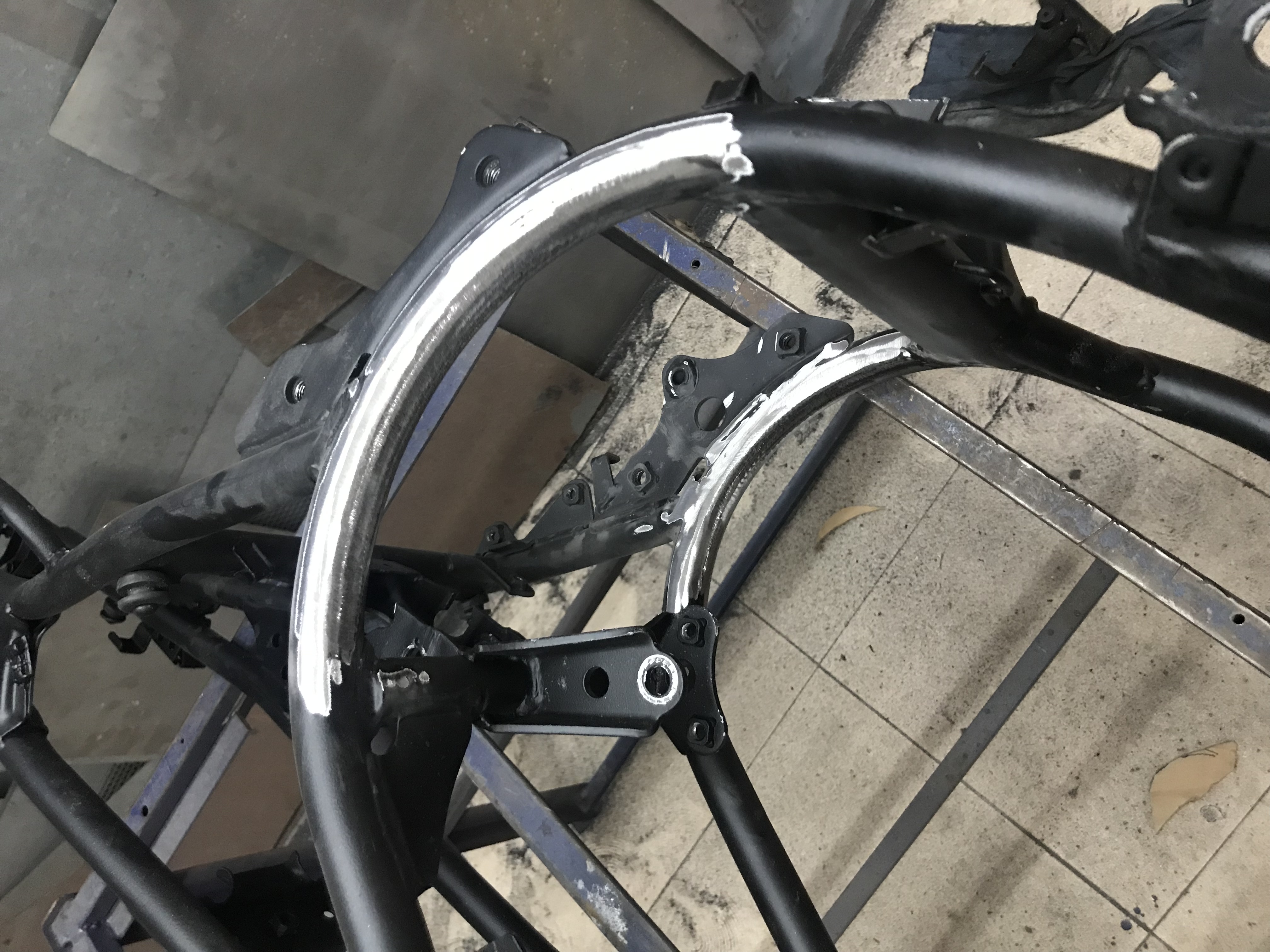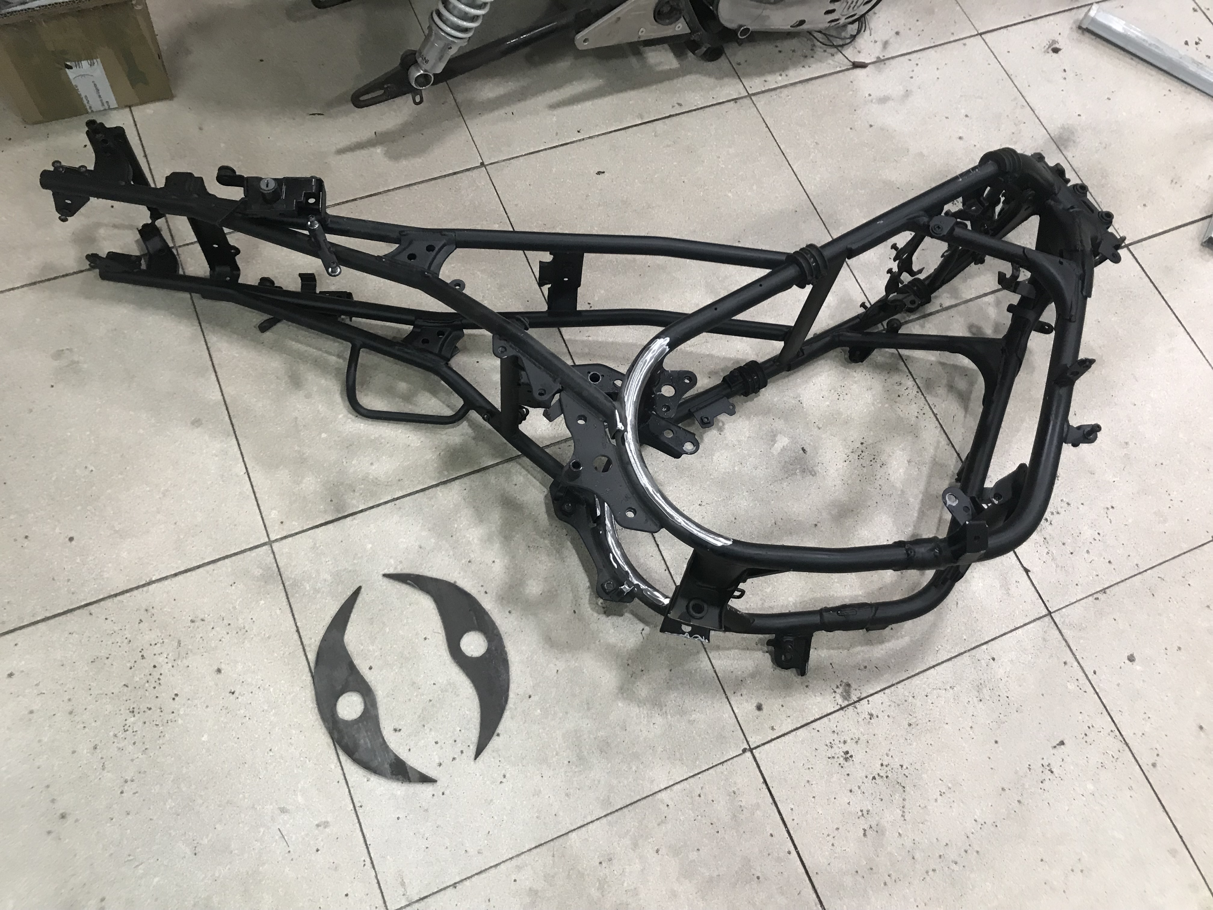 Después de darle varias vueltas al proyecto optamos por no ensanchar el chasis como hacen la mayoría que acoplan estos basculantes, lo cual nos complicó bastante el tema, pero creemos que ha valido la pena, al quedar un conjunto más estrecho y fiel al original.