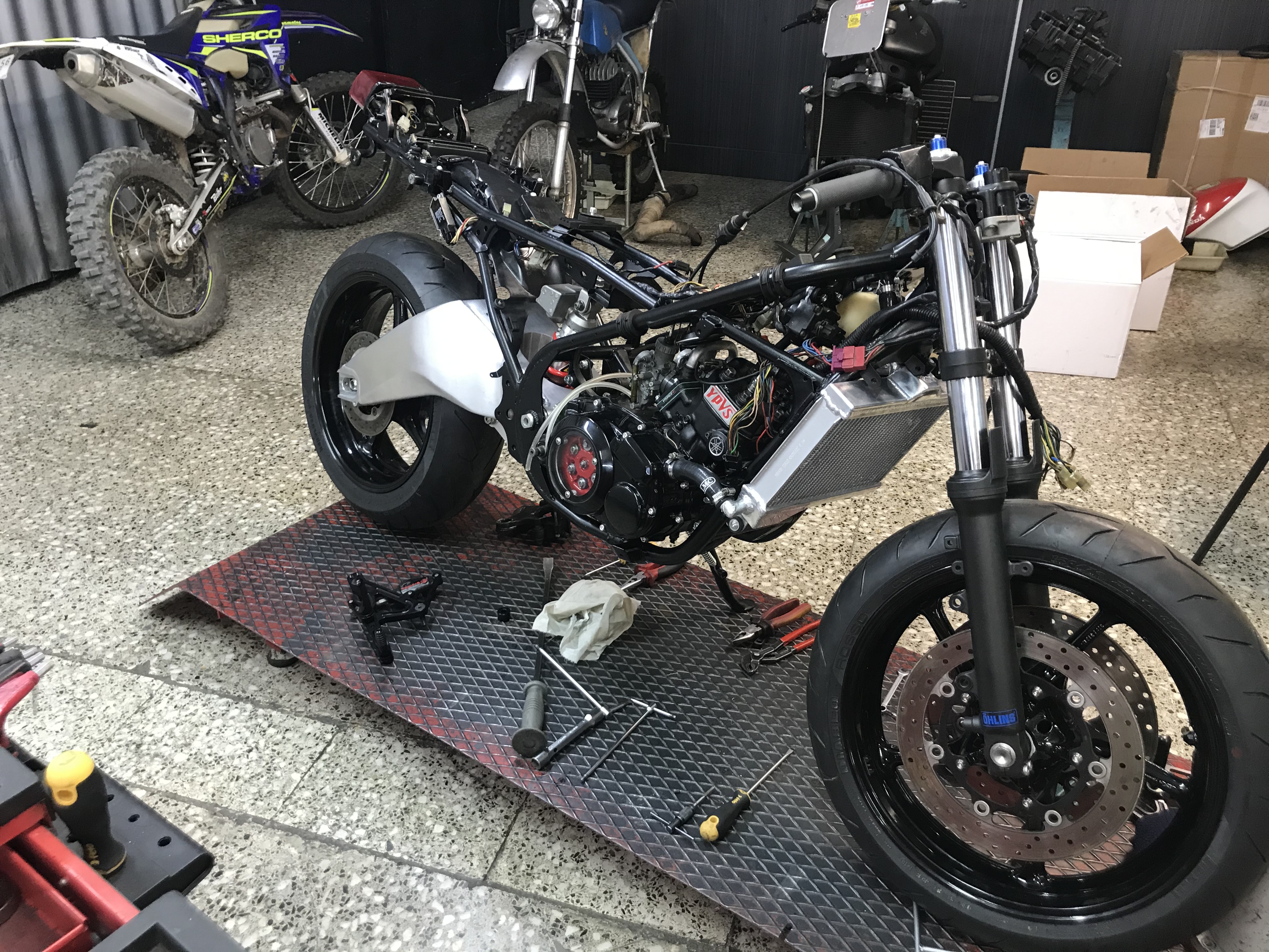 Alejandro es un manitas y se ha encargado de montar los escapes y acabar los últimos detalles. Aún le falta alguna cosilla, cuando la termine del todo nos pasará mejores fotos y un video de su prueba, mientras tanto aquí tenéis algunas de las fotos del proceso.