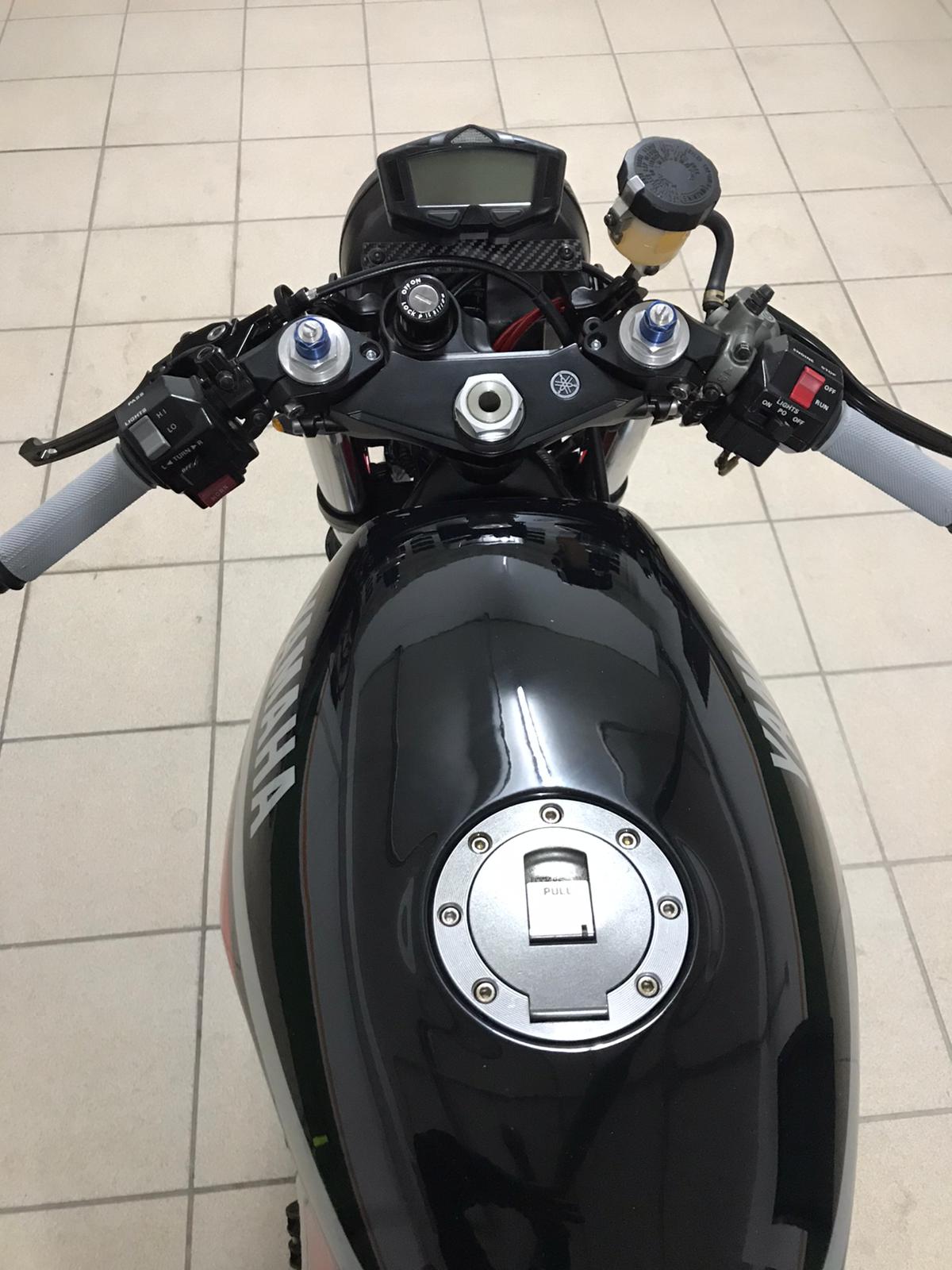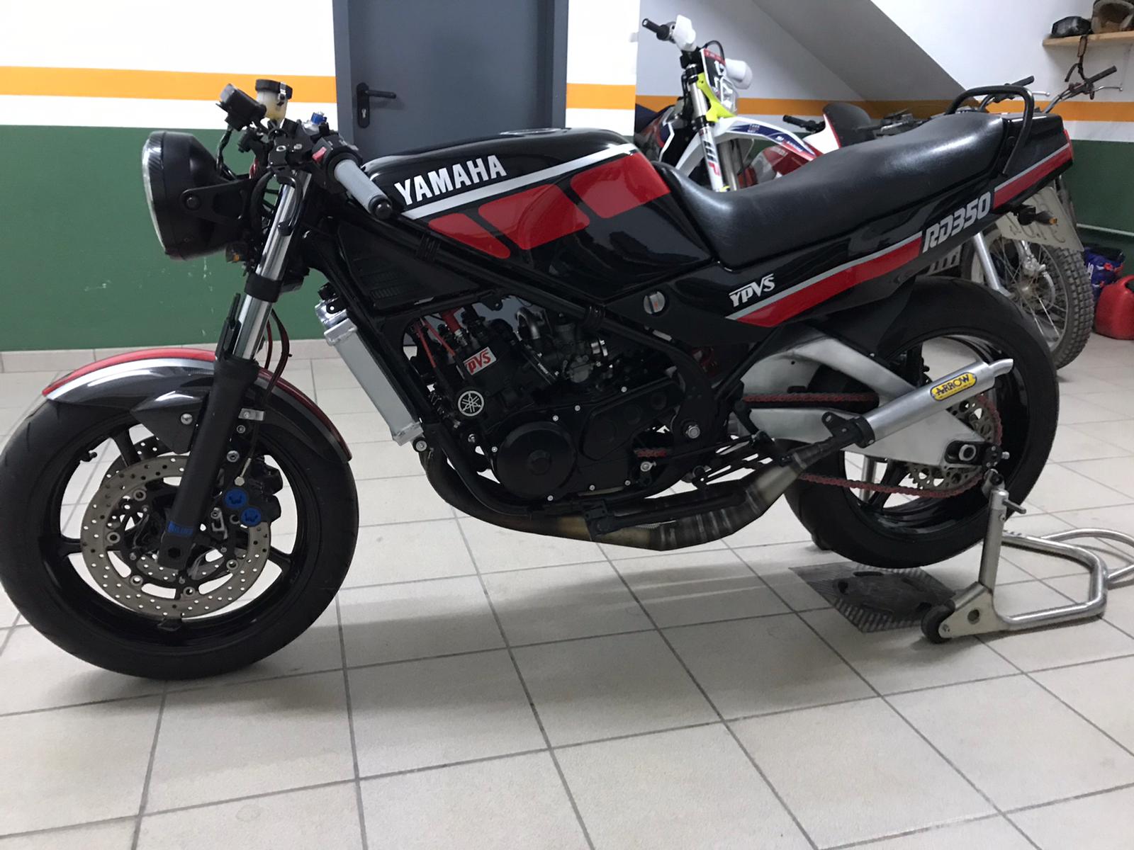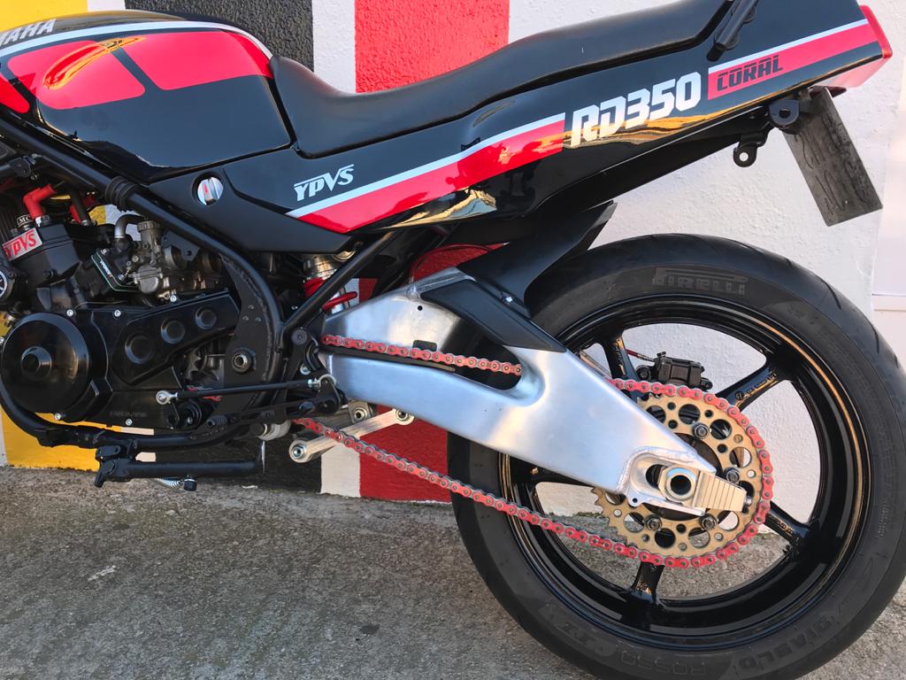 Pensó en nosotros para hacerle algunos retoques a su Yamaha RD 350. La idea era montarle un basculante de Yamaha R6 con todo su sistema de suspensión trasera y un tren delantero procedente de la misma moto. El motor ya nos lo trajo restaurado y potenciado, al igual que la carrocería con un acabado de pintura de muy alta calidad.